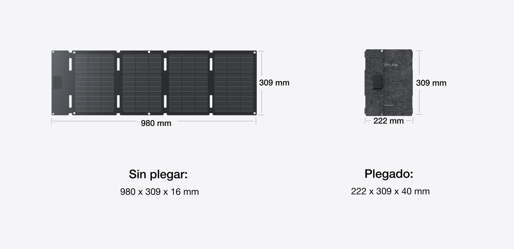 Gracias a una estructura que permite plegarlo en cuatro partes, el tamaño de este panel solar portátil se reduce notablemente cuando está plegado, por lo que cabe fácilmente en espacios pequeños como mochilas, SUV o minivans.